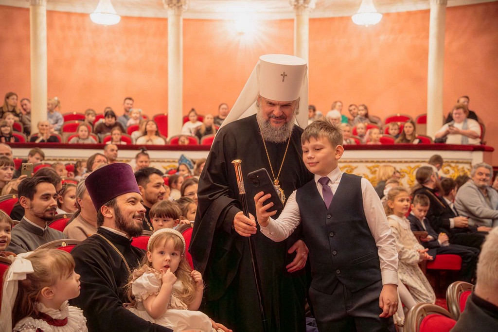 Перед началом представления с приветственным словом и с Рождественским поздравлением к собравшимся детям и их родителям обратился глава Тверской митрополии митрополит Тверской и Кашинский Амвросий.